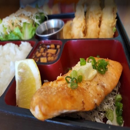 Comes with rice and salad